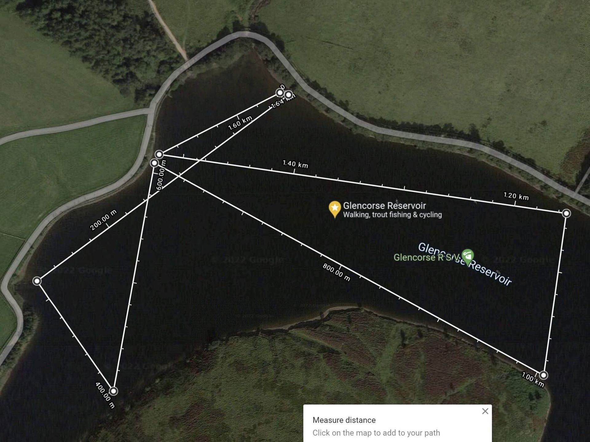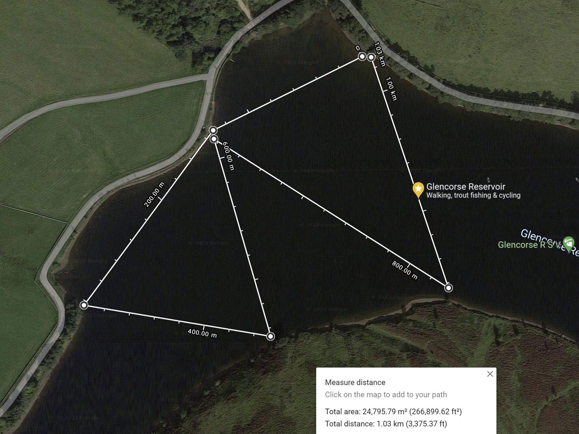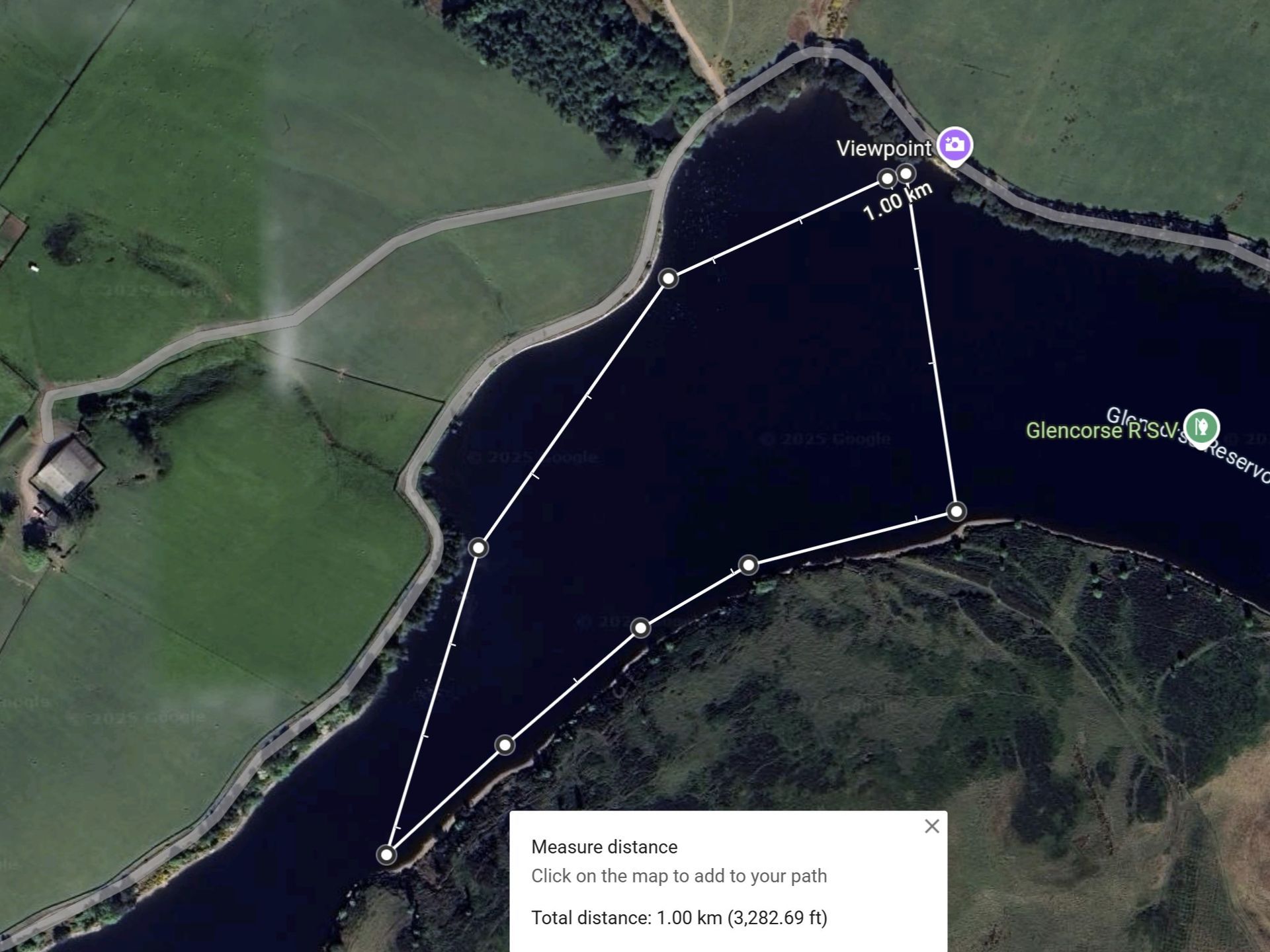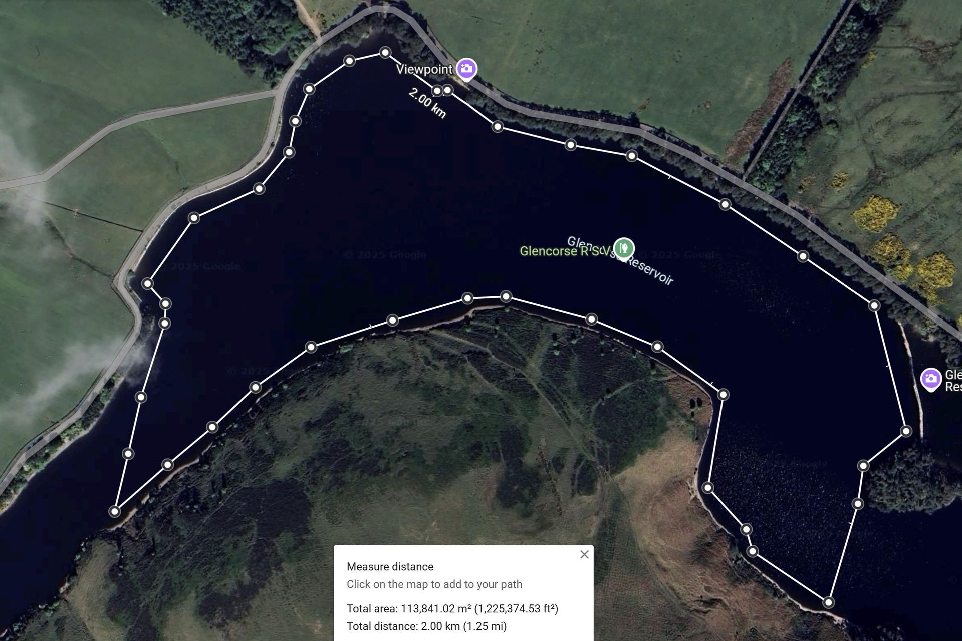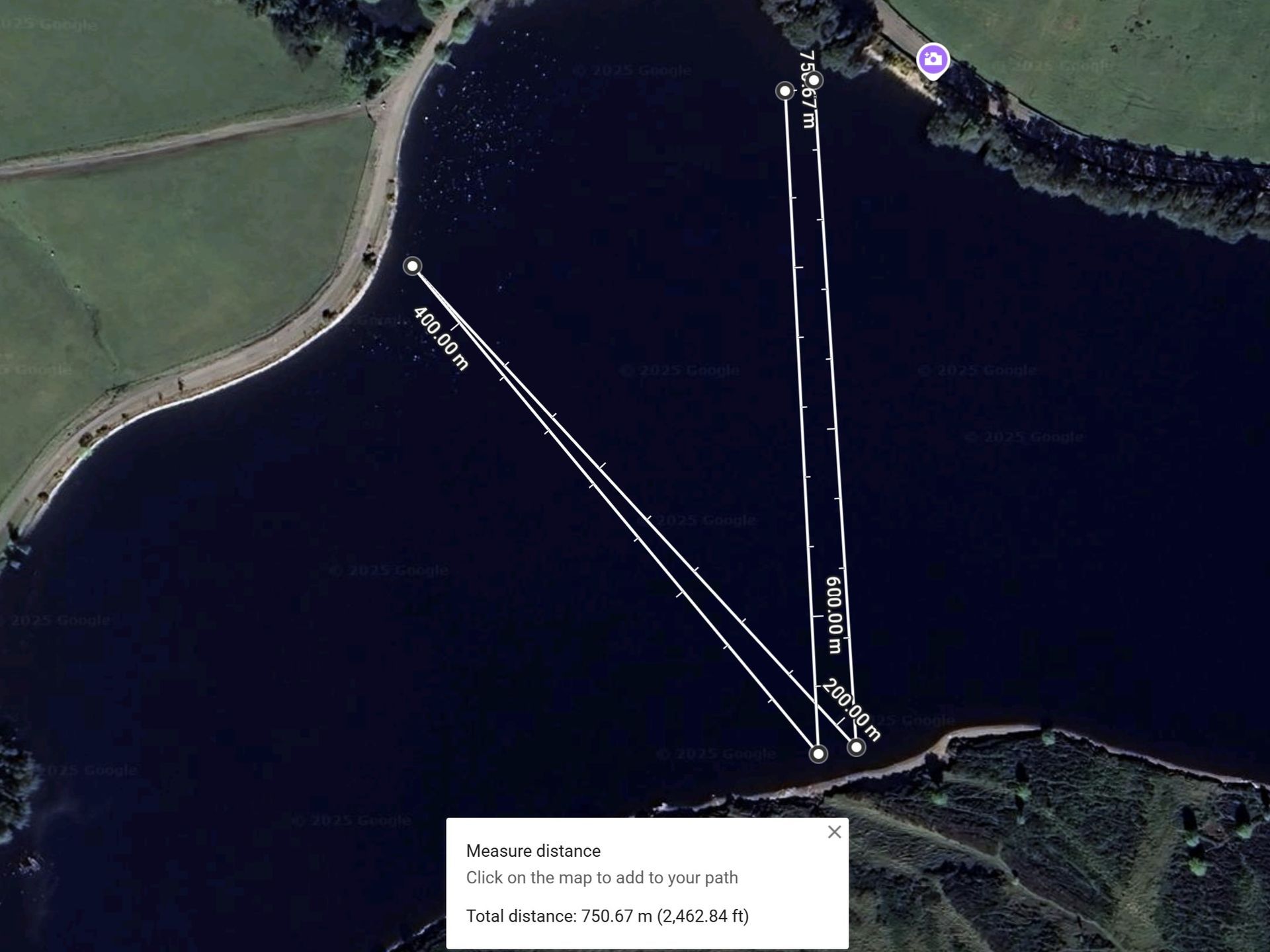 It is nice to swim across to the bench (260m return) or on warmer days to the bank on the other Turnhouse Hill side (400m return) - or even combine them and swim the "triangle" (500m). Suggested swim routes shown below.
