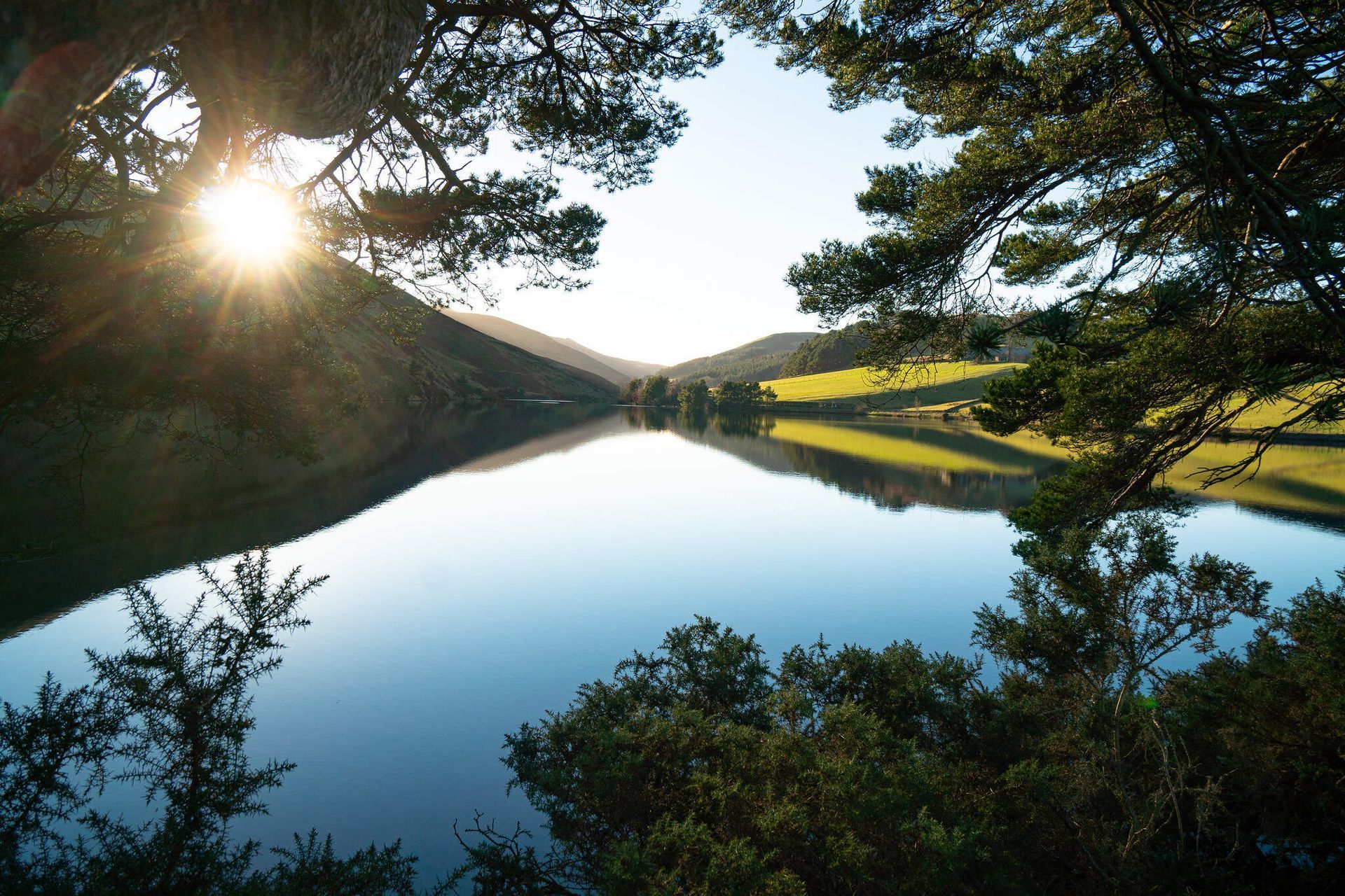 I recommended going on calm days when the wind is less than 20 mph. The reflections of the hills on the water are amazing. Sunsets are spectacular too - especially during the winter months. The sun hides behind the hills 2 hours before the official sunset time during the summer and 1 hour during the winter... so plan your swims so that you are in the water long before the sun disappears. The nearest weather station is Penicuik -