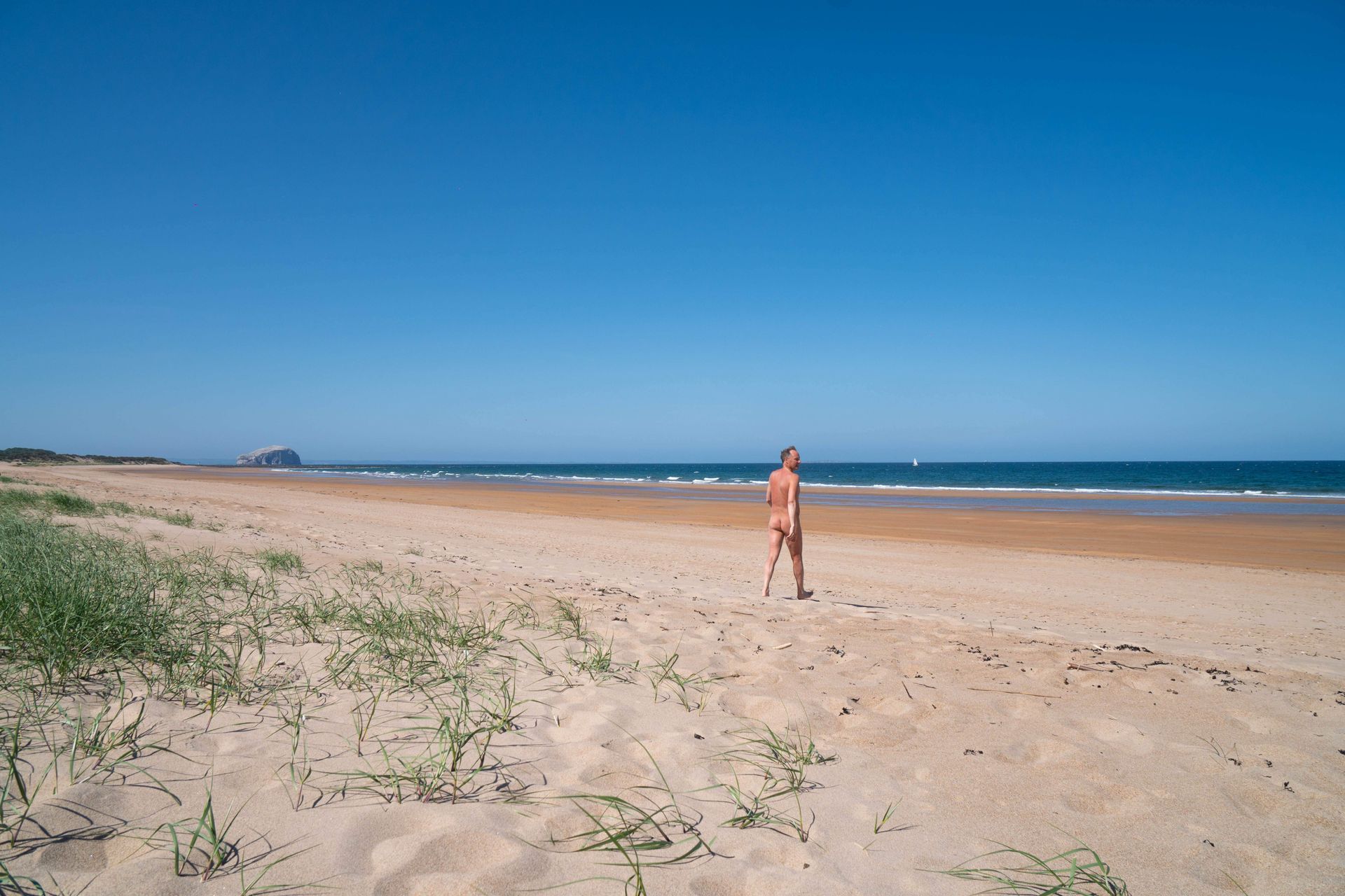 Hot midweek days in the summer are perfect for this beach. There is no-one around except the occasional dog walker. So you can venture further away from the Peffer Sands towards the Ravensheugh Beach end... shown in the image below. But do avoid school holidays and weekends.... unless the weather is cold, as it just won't be feasible to walk naked along the beach without raising a few eyebrows. The nudist beach of Peffersands is a little further along before the burn.. but I prefer a sandier location show below.
