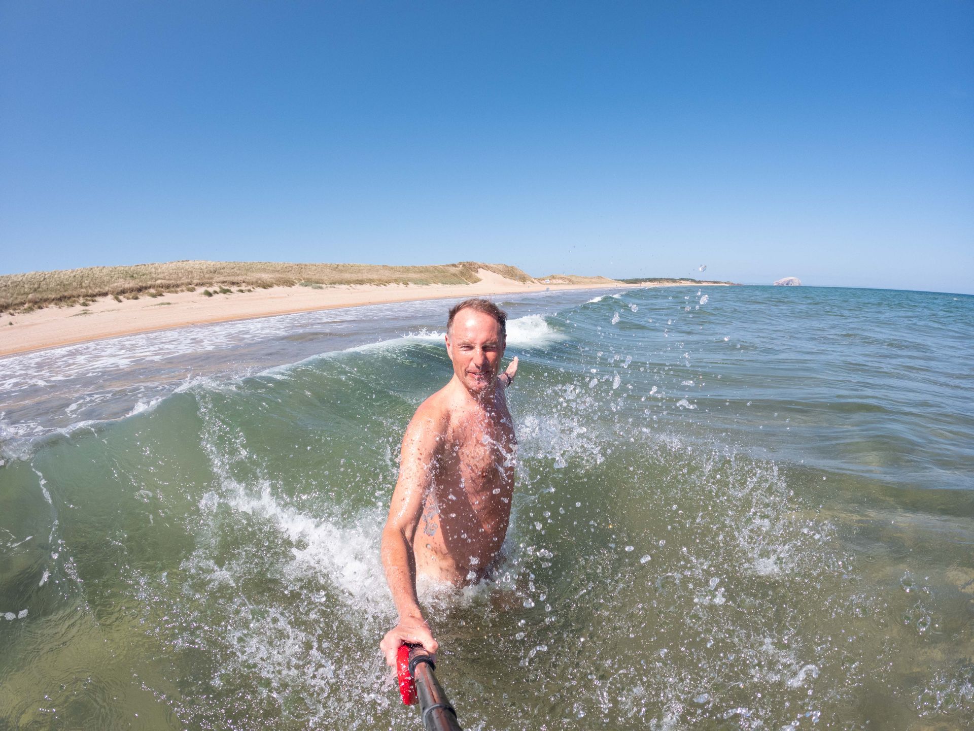 Peffersand Nudist Beach (unofficial) is at the northern end - shown on the left in the image below, though when then kids are in school the beach is quiet, and so naturist tend to venture further towards the Ravensheugh Beach end - which I totally recommend as there are no rocks in the water in that section.