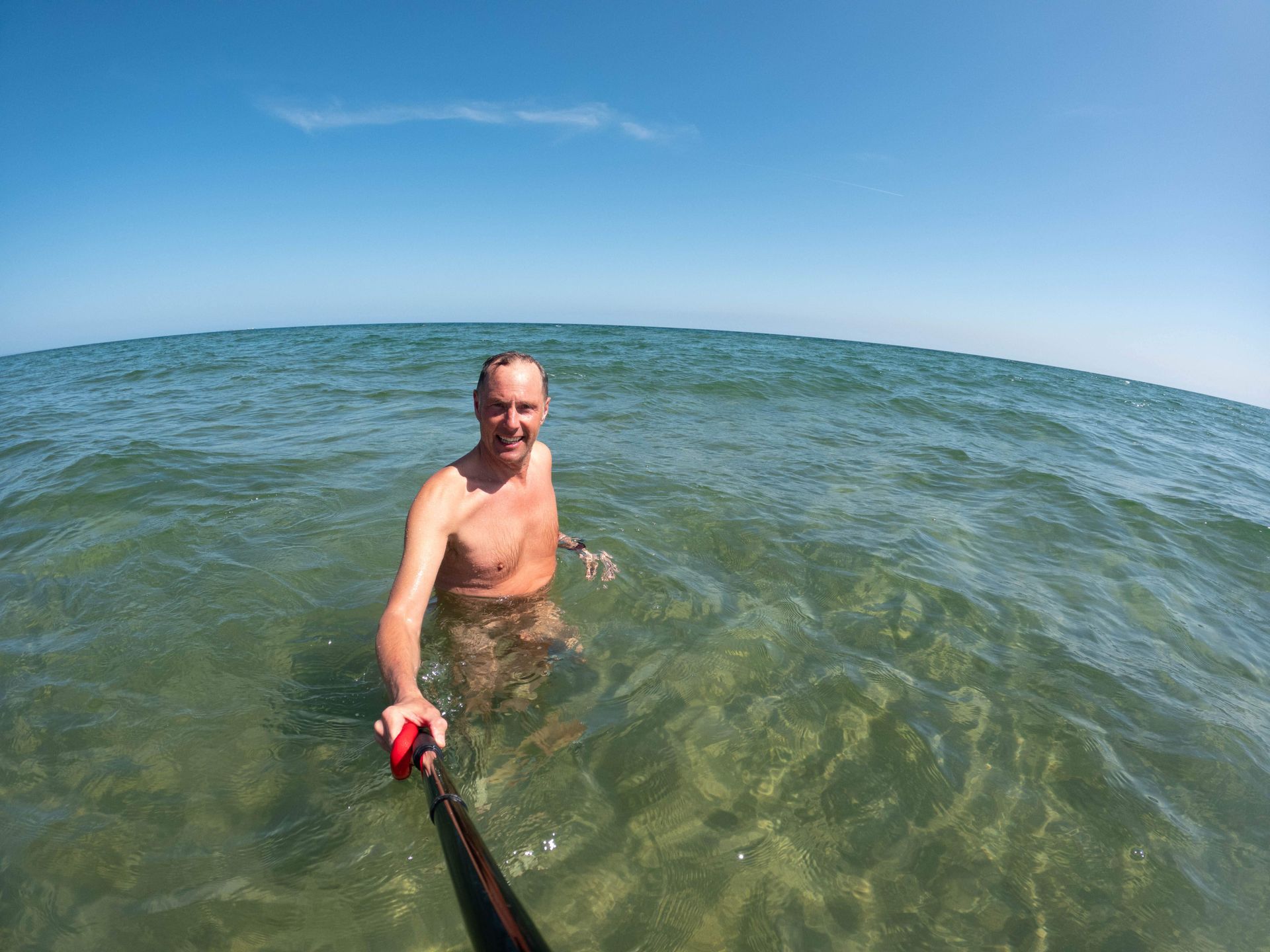 The tide does go out really far so it is best to time your swim around 1 hour either side of high tide -